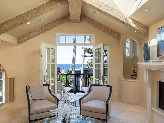 Enjoy the finest in Carmel Point living. Featuring ocean views from the public areas of the home and beautifully finished with limestone, wide plank European Oak floors, stone slabs, plaster walls and reclaimed beams, this home is both sophisticated and casual. Situated on one of Carmel Point's most coveted lanes, this residence is a short distance to the white sands of Carmel and River Beaches and conveniently located to the shops and restaurants of Carmel by the Sea. French doors flanking the living room lead to the sun-drenched private deck and three fireplaces enhance the warmth and ambiance, while the elevator and two car-garage make full-time living easy.