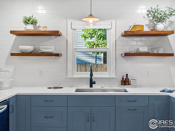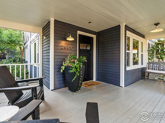 Bathed in natural light, this inviting farmhouse features a wraparound porch, spacious back deck, and a seamless layout for effortless living-just steps from Boulder's best! Nestled in the sought-after "Valley View" enclave between Mapleton Hill, Newlands, and Trailhead, this prime location is three blocks from the Dakota Ridge trailhead, four from Ideal Market/Whole Foods, cafes, dining, and a pharmacy, and eight from vibrant Pearl Street. Thoughtfully remodeled, this stylish 1,958 SF above-grade home maximizes every inch with an airy flow and ample storage. The professionally designed kitchen boasts floating walnut shelves, custom cabinetry, and sleek stainless appliances, creating an inviting space for cooking and gathering. The open floor plan links dining and two living areas-one with a charming fireplace-before flowing to the back deck through an oversized glass slider. A main-level bedroom and full bath offer flexibility for guests, play, work, or media. The mudroom includes built-in seating, cubbies, hooks, and a large pantry for streamlined organization. Upstairs, the serene primary suite is a retreat with soaring ceilings, a private Flatirons-view deck, two walk-in closets, and a double-vanity 3/4 bath. Two vaulted-ceiling bedrooms (one with mountain views) share a full bath, balancing connection and privacy. The upstairs laundry adds convenience. Charming with a white picket fence, trellised gate, and lush landscaping, this home invites you to sip a drink on the expansive porch or entertain in the private backyard, enclosed by a 6-foot cedar fence-perfect for dining, gardening, or play. Two storage sheds and a 983 SF unfinished full-depth storage space offer endless possibilities. A builder's sketch of a potential garage is available; city guidelines allow for a garage and/or ADU (buyer to verify). 2625 6th Street is more than a house-it's a lifestyle. This West Boulder gem offers an unbeatable location, stunning views, and bespoke finishes. Welcome home.