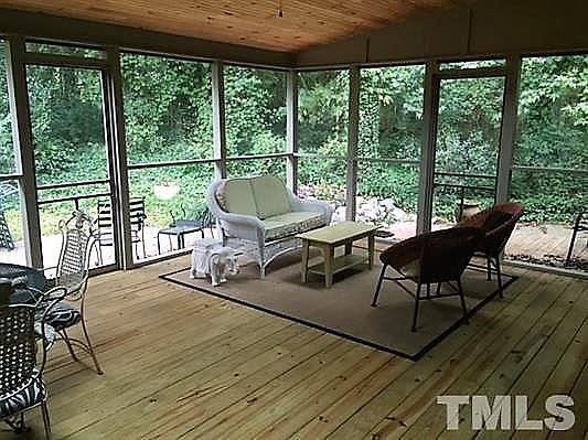 WOW!!! Finally - a wonderful brick ranch w/porch & 2 car side GARAGE, near Longview lake & minutes from Downtown & WakeMed. Stylish mid-century details, hardwood floors, wood-burning fireplace, built-ins. Kitchen with eat-in breakfast bar, white cabinets, solid counters. HUGE Screened porch (346 SF) with skylights & access from Family Room & Master Suite. Spacious Master with 3 closets! Separate Office. Great in/outdoor spaces & flexible floorpan- built for entertaining. Lush landscaping for privacy. 3 full baths, Newer roof. Truly a hidden gem!