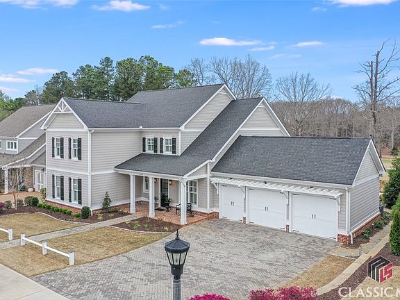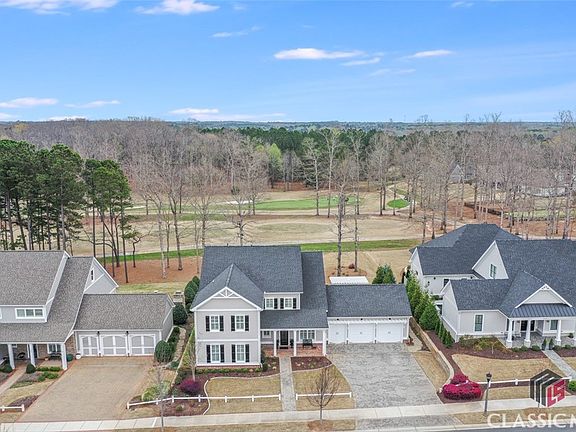 Fabulous and available in the Bent Pine neighborhood of The Georgia Club. This magnificent home is only five years old with multiple upgraded features throughout the home, including foam insulation. If you attended the December, 2022 Holiday Tour of Homes in The Georgia Club, you probably had an opportunity to enjoy the beautiful Holiday and year-round decor inside and outside this elegant home. The panoramic views of the Black 7, Chancellor's Course can be enjoyed through the full-length wall of windows in the sunroom or from one of the large, back patios which offer a fire pit and farmhouse table for alfresco dining. The main level of this luxury home features a huge primary suite and a secondary bedroom or office. Additionally, two guest bedrooms and private baths are located upstairs, along with a spacious den and separate loft area that includes a queen bed built into a wall. The Bent Pine neighborhood is a highly sought after neighborhood and is located near the pickle ball courts and a private, small lake. This home is pristine and move-in ready for the discerning buyer who can appreciate the attention to detail and quality features this home has to offer.