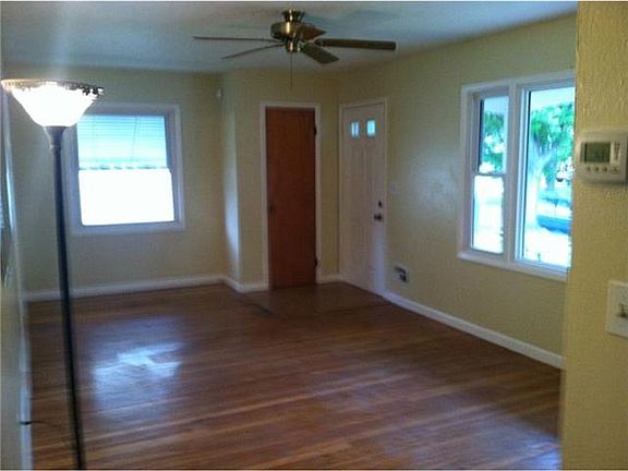 Freshly painted living room. Quality kitchen cabinets with black appliances and newer floor in kitchen. 1 year old furnace and air. Windows new in 2004. Hardwood in living and bedrooms. Large deck in fenced backyard. Full basement.
