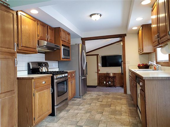 The Same Owner Since 1967 LOVED EVERYTHING About This Property! Maintenance Free Vinyl Siding, ALL NEW WINDOWS, Alarm System, Smart Thermostat, Furnace '11, Water Heater '20, Water Softener, 4 Car Garage w/ Tandem Door To The Backyard, Concrete Patio/Walkway '20, New Triple Wide Driveway/Turn-Around! Totally Remodeled Eat In Kitchen Includes ALL Appliances And Offers Tons Of Cupboards & Counter Space. Sunny Living Room w/ Hardwood Floors In The Front, Fireplace In The Family Room In The Back. Sliding Glass Door To The Backyard, Deck w/ Awning & 30' POOL! 2 Bedrooms, A Remodeled Bath w/ No Step Shower & Laundry All On The 1st Floor! Upstairs Has Another 2 Bedrooms w/ Huge Closets, 2nd Remodeled FULL Bath w/ A Double Vanity. Many Extras & Endless Storage, Plus Additional Unfinished Space In The DRY Basement! Can Also Be Zoned Commercial/Home Business.