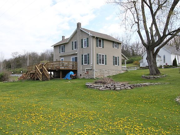 Classic 2-story farmhouse with 3 bedrooms nicely sized and full bath on the 2nd floor. 1st floor features an updated living room, dining room and a spacious updated kitchen with a center stand for the master chef. Relax on the covered front porch or the spacious rear deck with an awning to use when you choose. With almost an acre of land with a stream running along the length of the back yard. Storage shed and chicken coop to call your own. All located in State College School District. Approximately 5 miles to Penn State University and Beaver Stadium.