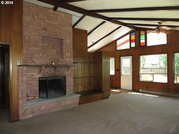 Unique Multi-Use Design & Living on .47 acre! 2 beds, bath, kitchen and laundry on each lvl w/ sep ent & inside stairs! Vaulted wood beam ceilings, new vinyl wndws, new elect panel, 2 frplcs w/ stone hearths, remod baths w/ new vanities, dbl sinks! Huge patio, new decks, sunny grassy areas, 2 car garage, lots of parking, fire pit! Great Views & Light! Near University & Hendricks Park!