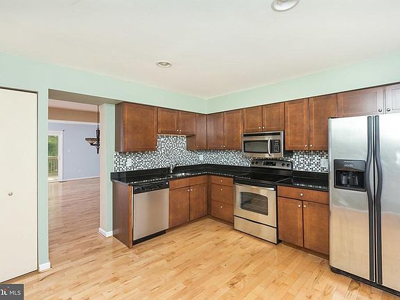 UPDATED BRICK TOWNHOME W/ 3 FINISHED LEVELS & WALKOUT BASEMENT BACKING TO WOODED AREA - this large home features an open floor plan with hardwood floors throughout, renovated kitchen with ss appliances, granite couters, custom cabinetry and tile back splash. Large living room and separate dining area that are appointed by wood burning fireplace and rear deck. Upper level offers 3 bedrooms and 2 full baths with connecting master suite, finished lower level with 4th bedroom and walk out family room to rear patio. Conveniently located off 695!