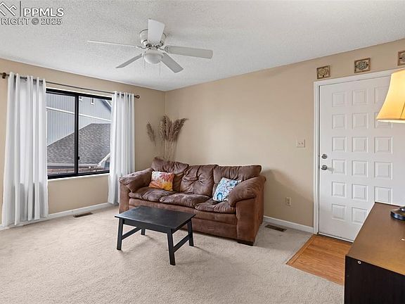 ***See the Amazing Video at the Virtual Tour Link on the listing*** Beautifully maintained end-unit townhome offering main-level living in the peaceful and private Hearthwood community. This home is nestled among mature trees delivering comfort, convenience, and thoughtful updates throughout. The living room is bright and inviting and the dining room opens to a patio, perfect for morning coffee or evening relaxation. The kitchen features newer white cabinets, newer countertops, and a stainless steel double sink. Stainless steel appliances include a smooth top range, over the range microwave oven, dishwasher, and a French door refrigerator. The laundry room is just off the kitchen providing easy access to the 1 car open garage and includes the washer and dryer. The large primary bedroom includes two closets and a private entrance to the full bathroom. Three additional storage closets in the hallway provide plenty of room for organization. Six-panel doors throughout the home add an extra touch of style and continuity. Recent upgrades include new insulation in the attic and crawl space (2024), new electrical panel (2018), and freshly cleaned carpets (2025). Enjoy the benefits of an end-unit location with extra privacy and natural light, a 1-car attached open garage, ample guest parking, and an exterior storage unit. Located in the quiet and private Hearthwood Townhome complex within the Village Seven area, this home is surrounded by mature trees, shrubs, and abundant green space. Enjoy easy access to schools, restaurants, entertainment, and shopping along Academy Boulevard. Outdoor enthusiasts will appreciate the proximity to Palmer Park and nearby walking trails. Whether you're looking for a peaceful retreat or a low-maintenance lifestyle close to everything this townhome offers the best of both. This move-in-ready gem won't last—schedule your tour today!