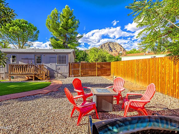 Turnkey West Sedona gem! This stylish 1,310 sq ft single-level home offers 3 bdrms, 2 bths, NO HOA & is currently a proven STR performer: grossing $17,306 from 5/1/25- 10/24/25. Avg Nightly rate at $188. Modern updates include quartz counters, gas range, appliances, lighting, fencing, turf/grass, new toilets, & a 2023 HVAC. The fully fenced backyard steals the show with a dog run, fire pit, and Thunder Mountain views: perfect for starlit evenings. Walk to Vino Di Sedona for wine, bites, and music, or hike Sedona's famed trails nearby. Centrally located, close to grocery, the Stupa, and more. Move in full-time, enjoy as a retreat, or let it earn when you're away. Furniture package included in price minus heirloom items. 3 walk in closets and an outdoor shed for plenty of storage space.