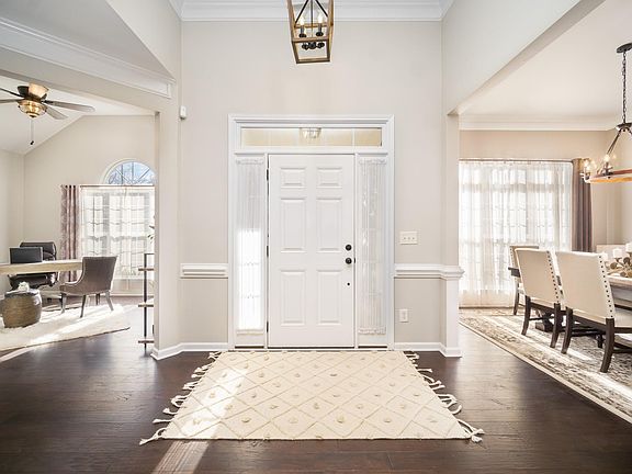 Renovated ranch nestled atop a wide, sweeping corner lot. Mature & diverse landscaping softens the stately lines of the brick front. Updated with modern, rustic touches starting with hand-scraped hardwood floors & continuing all the way to the wood accent light fixtures. High ceilings with nearly floor to ceiling windows. Ideal kitchen design; creamy, soft colored cabinetry accented by stainless hardware & appliances; gas stove & single basin farmhouse sink. Designer tile backsplash perfectly compliments the granite counters. Split floor plan layout; owner’s suite is private tucked away from add’l bedrooms. Private home office with beautiful palladium window. Unlike most ranches with only 2 full baths, this home offers an additional ½ bath; perfect tidy restrooms for dinner guests. Both full baths beautifully updated but the owner’s bath really stands apart with custom shiplap & marble tile accents. Fantastic Laurel Park community has pool, pond, sports courts, & playgrounds.