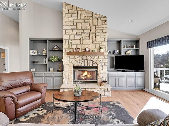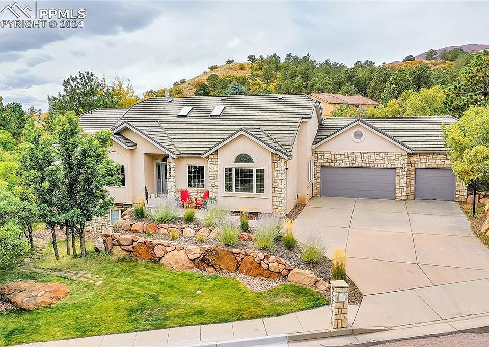 This is main level living at its best! This spacious ranch-style home with 4 bedrooms, 3 bathrooms, a coveted 3-car garage, spread over 4465 total square feet, and nestled on a generous 16,270 square foot foothills lot. Every inch of this home is thoughtfully designed for your comfort and ease. As you enter the home you will immediately be drawn to the beautiful hardwood floors, soaring vaulted ceilings and the 2-story fireplace hearth in the great room. The updated kitchen boasts custom cabinets, granite countertops and stainless-steel appliances. The primary suite is airy and bright with a walkout to the deck. The private 5-piece bathroom has been completely updated with tasteful and modern finishes. Also on this level is an office with French doors, living room, dining room and an updated laundry room. The lower level boasts a wonderful entertainment area with spacious recreation room with a wet bar, fireplace and walkout to the backyard. You will also find 3 large bedrooms and a full-sized bathroom with a double vanity. The location sits on a corner lot of a cul-de-sac with mature, natural landscaping. The neighborhood schools are in award-winning Academy School District 20. The property is also near world-class trails including Blodgett Peak Open Space and Ute Valley Park.