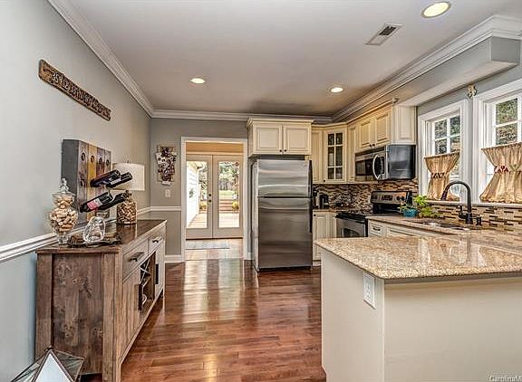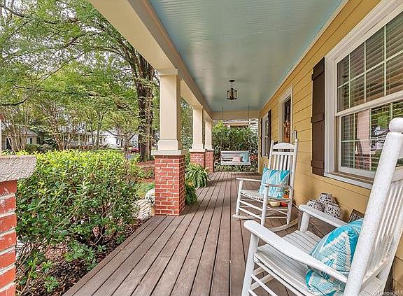 Charming Chantilly bungalow with covered, rocking chair front porch. Entryway opens to foyer and dining room that flows into living room area. Open kitchen and breakfast area. First floor master bedroom suite with floor-to-ceiling tile shower. Additional bedrooms and/or office space located on second floor with shared full bathroom. Double doors lead out to back deck and fenced backyard. Pathway from driveway leads up to storage shed and back entrance of house. Walkable to Elizabeth & Midwood.
