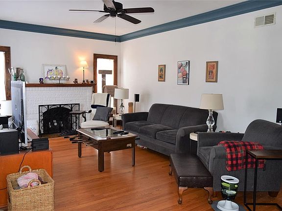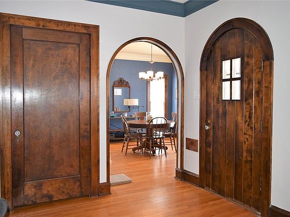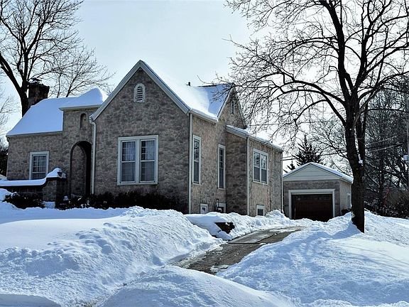 Delightful Tudor style gem packed with charm & character throughout. Inviting arched entry door opens to large living room with fireplace, crown molding and glowing just refinished hardwood floors. Dining room is flooded with natural light, has gleaming hardwood floors, crown molding and swinging butler door to sweet kitchen with wood floors, granite tops, pantry and comes complete with attractive stainless steel appliances. Central hallway and both bedrooms have beautiful hardwood floors as well. French door to deck and fenced in back yard off one of the bedrooms and wall of built-ins in the second bedroom. Updates throughout including wiring, lighting fixtures, new basement windows, renovated bathroom, attractive garage door with battery backup, stone retaining wall in back yard and more. Clean useful basement with room for workshop/hobbies and plenty of storage. This beauty comes complete with washer & dryer, is on a corner lot and won't last long. Call today for a private tour.