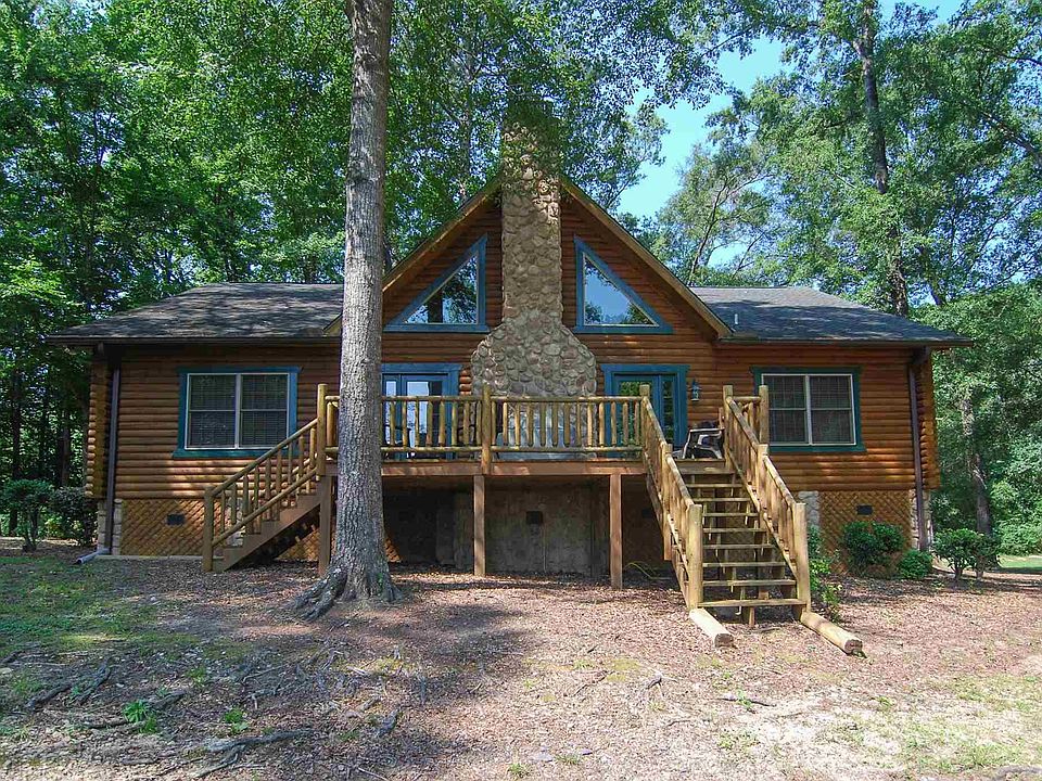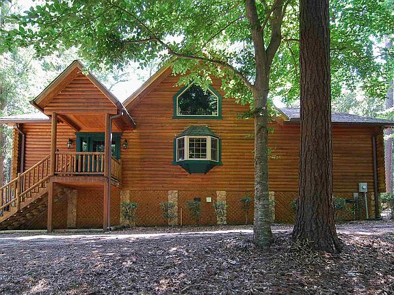 One of a kind. Handsome log home in a tranquil setting on 4 acres so close to everything. Zoned for Meadow Glen Elem., Middle, and River Bluff High. Lots of Hardwood floors with some tile. Huge closets. Open plan with high ceilings. Stone fireplace recently cleaned by chimney sweep. Exterior re-stained. Gutters with gutter guards. Enjoy nature, wildlife and view of private pond next door.