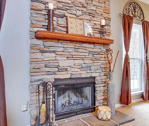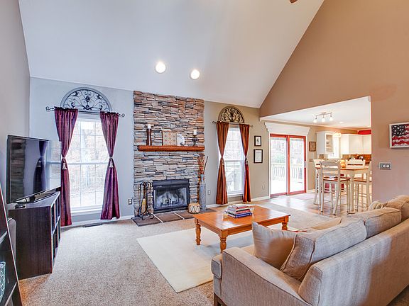 Black metal fence separates yard from privately owned heavy woods. Deer common! All the right upgrades with stacked stone fireplace, recessed lights, wrought iron staircase, hardwoods up and down minus living room and stairs with new carpet, newly expanded tile shower and french doors with private deck in master.