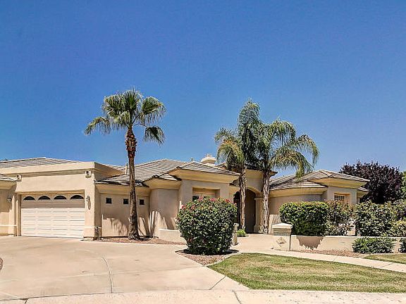LUXURY RENTAL 4bd, 3.5 ba, 3,300sf residence located in the highly sought after gated community of Estates at Northridge in Mesa. Elementary school is located directly across the street, with Jr High & High School within close proximity. This elegant home boasts vaulted ceilings with an open floor plan, gas fireplace, travertine flooring with no interior stairs. Outdoor living includes a dazzling salt-water pebble tec heated pool w/water feature, covered patio & built-in BBQ. Split Master has a large walk-in closet, two separate vanities and a palatial soak tub for complete relaxation. Corner lot w/fruit trees across from the greenbelt. Pool & Gardener Maintenance included in lease. Arizona living in style .