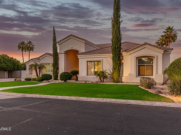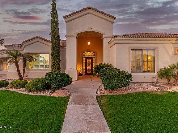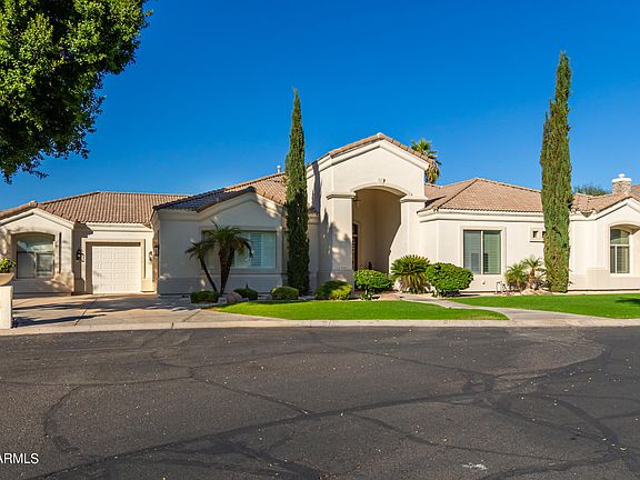 This amazing custom home is part of a gated community of only 28 properties in popular north Mesa location. Custom double front door entrance with roomy and welcoming entry area. Come in to your formal dining and living areas with elegantly coffered 10' ceilings. Inside remodel includes almost the entire home which now features ceramic plank/wood look tile throughout with upgraded carpet in all bedrooms. Custom 8'' baseboards throughout highlight the striking flooring. Large family room with fireplace and TV area. Fully remodeled chef's dream kitchen with antique finished oversized island with furniture finish. High end custom soft close cabinets with extra wide crown molding, custom range hood, travertine backsplash, granite slab counters, large double sink and designer faucet, wall oven. The 4 oversized secondary bedrooms flank the extra wide hallway and two guest baths (3 have walk-in closets) with jack-and-jill bath between the two at end of the hall. All baths have Toto toilets.