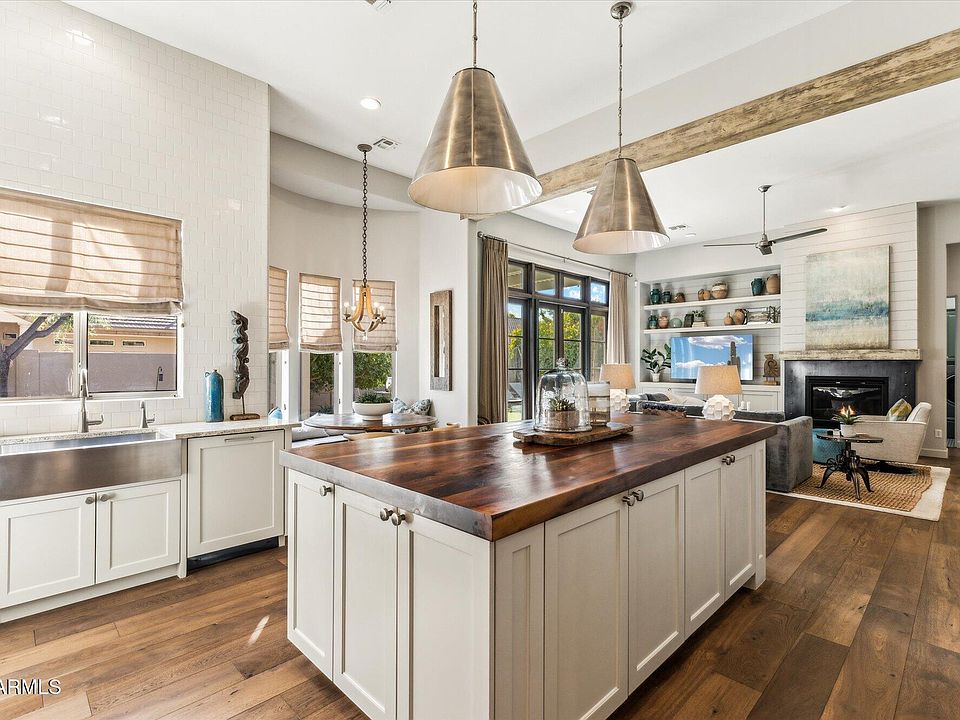 Discover refined elegance in this beautifully remodeled home, professionally designed by MARA Interior Design. The entrance opens to an elegant formal living room with stunning views of the pool, spa, and glass fire pit through large windows. The chef's kitchen, equipped with high-end Wolf and Subzero appliances and a spacious walk-in pantry, and extends into a spacious family room adorned with a fireplace and built-in desk. This 3,309 sqft home includes 3 en-suite bedrooms and a versatile 4th bedroom currently used as an office and game room. Outside, a landscaped oasis awaits, complete with a covered patio, built-in BBQ, sunlit...