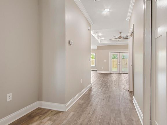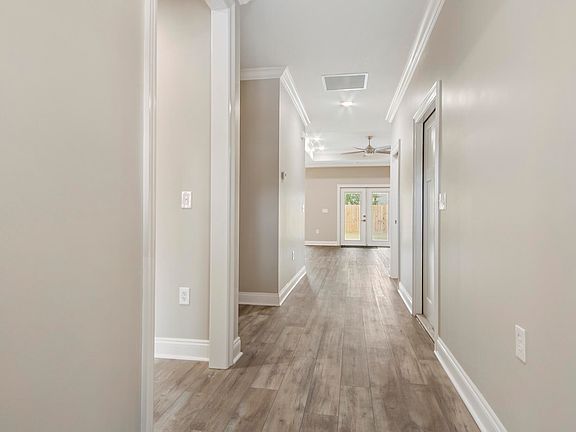 Under contingent contract - seller will consider back up offers. New construction home conveniently located off Hwy 231 in this 18 home new subdivision., Outlaws Way. 3 spacious bedrooms and 2 full bathrooms. Fully landscaped yard with an irrigation system and privacy fence with gates on both sides of the home. The brick exterior with board and batten hardy board front is an eye catcher. Split floorplan provides privacy for the primary suite. Custom features are found throughout the home with upgrades of 9 ft ceilings, large island in the kitchen with solid wood cabinetry, quartz countertops, backsplash and full stainless steel appliance package. Crown molding in great room, dining room, and kitchen. Great Room features tray ceiling. The primary suite features a double vanity, large garden tub, separate custom cultured marble shower with sliding glass doors and a large walk-in closet. Vinyl plank waterproof flooring throughout. LED recessed lighting and upgraded fixtures. All information contained herein is believed to be accurate and true however the buyer assumes complete responsibility to verify all information.
