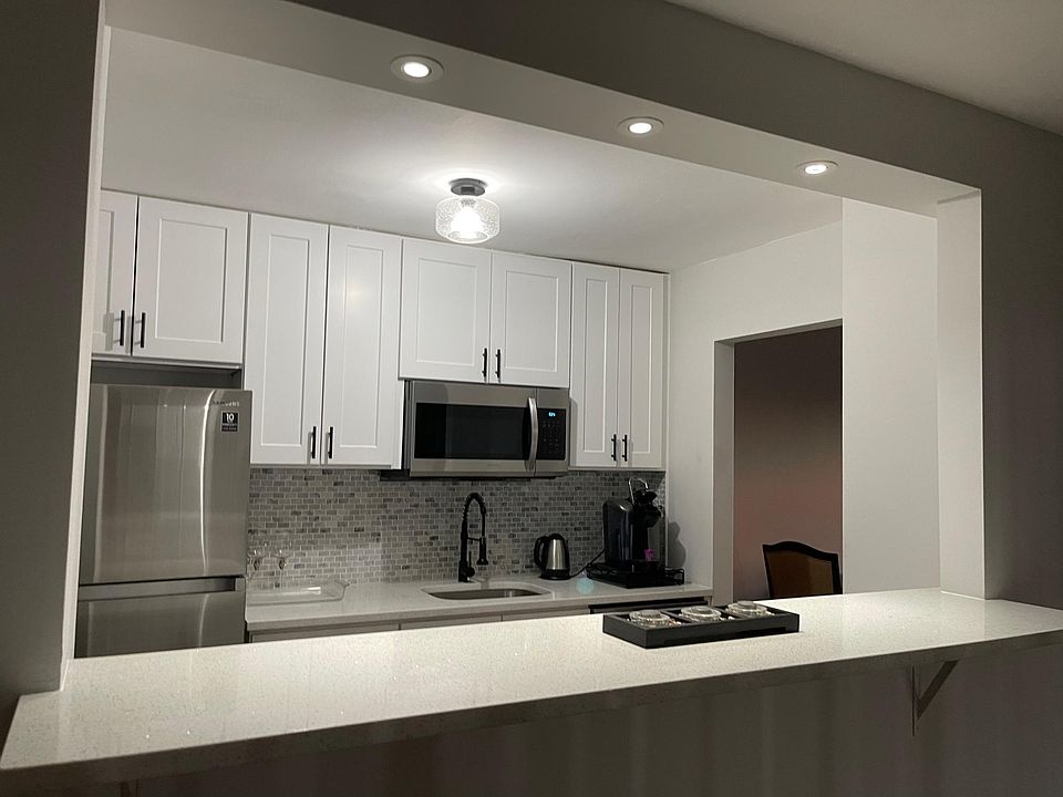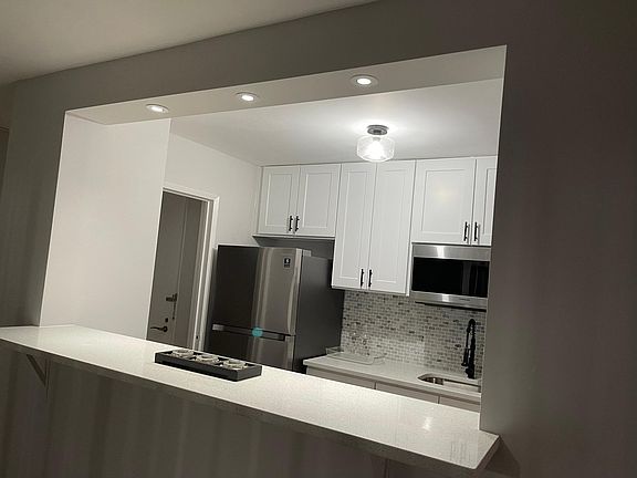 Fully renovated from top to bottom huge 1 bedroom 1 bathroom end unit with balcony is available 05/01/2022. Everything in this unit is brand new - Samsung appliances, kitchen cabinets, bathroom, wall to wall carpet, light fixture. Open concept kitchen. Tons of closets. Amenities include swimming pool, gym, tennis court, library. One assigned parking spot and assigned storage space in the garage. Rent includes cooking gas and hot water. All you need to pay for is electricity and cable. Perfect place for someone who is looking for renovated, clean, light filled, big, easy living space. Wonderful 24/7 security team and on-site management will guard your safety and comfort. Renter pays for one time move-in fee of $300, and electricity and cable every month. No pets, no smoking.