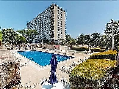 Stay cool by the pool this summer ! Great views from 7th floor and includes a garage parking space for your convenience. Super Spacious studio condo freshly painted and ready for you to move right in ! Heat in the winter, air conditioning in the summer, hot water and cooking gas are included in the common charge. Brand new GE refrigerator in April of 2024. Excellent commuter location on the Fairfield townline just minutes to the Merritt and I-95. Don't miss out on this one ! Contact a Realtor today to see this large studio condo !