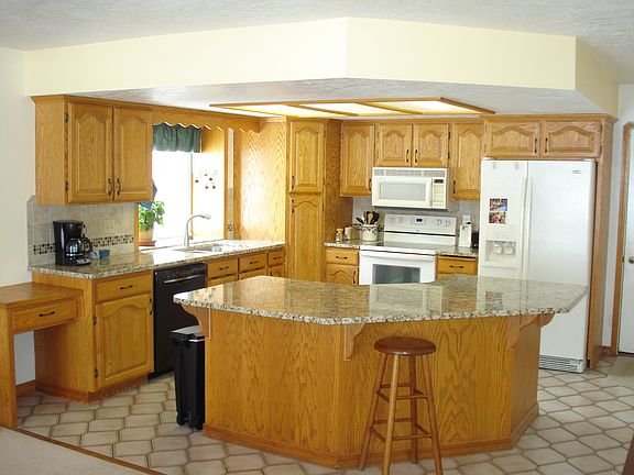Excellent golf course home with privacy deck in back. New carpet 2010-11, new furnace 2013, new water heater 2014, new granite in kitchen 2012, new water softner 2015. Wonderful sunny den-office on main floor, 7 seater breakfast bar, pull-out drawers in kitchen, spacious living room with vaulted ceiling and formal dining-family room combination. Triple car finished garage with golf cart door in 3rd bay. Two 8 foot doors in garage. Plumbed for central vac. Skylight in master bath with jetted tub. Double vanity in main bath. Main floor utilities. Workshop-hobby craft area in basement with egress windows. Three spacious finished rooms in basement.