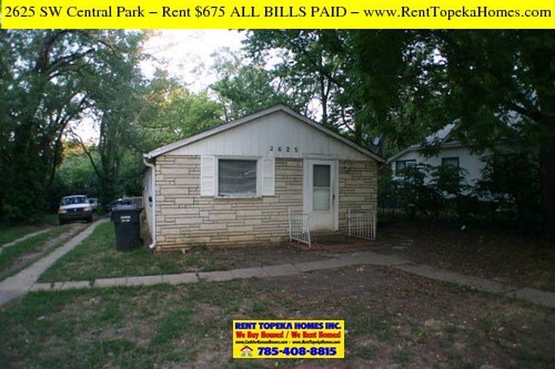 Available Now! 2625 SW Central Park, Topeka, KS 66611 From 27th & Topeka Blvd go 3 blocks West to Central Park and 1/2 Block South 2 bedroom 1 bath front duplex. Includes Stove and Fridge, Central Heat and Air, ALL BILLS PAID, water, trash, gas and electric. For more information or to schedule a showing call 785-408-8815 or visit our website at http://www.RentTopekaHomes.com Pet Policy - Pets are welcome for an additional $100 Pet deposit and $25 per month per pet.