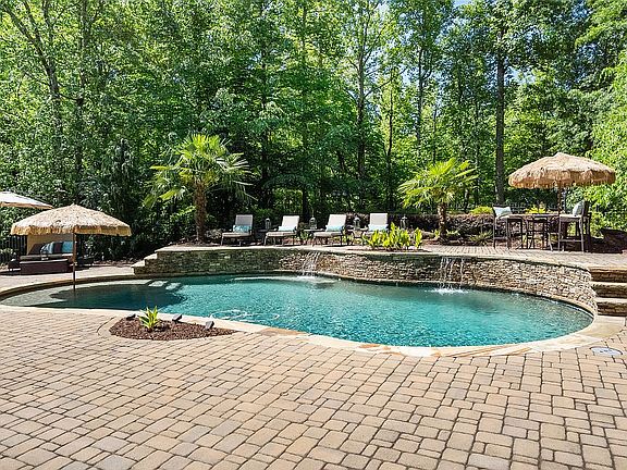 We're all looking for an escape from hectic living and a place to enjoy the outdoors. This private 2.6 acre resort style home with pebbletec pool gives you that and more. No HOA. 3 car garage. Finished Terrace. Bring the boat or RV. The owners have lovingly maintained and updated every inch of this custom home. Solid maple floors have been refinished. All bathrooms have been fully renovated. Kitchen cabinets have been painted. New lighting, new flooring upstairs- hardwood in hallway and master suite for durability and carpet in secondary bedrooms. Finished terrace level has a tiki bar for entertaining and large media/ recreation room. Extensive outdoor stone and paver patio. Gorgeous tree-lined setting. Wrap around front porch with Gazebo. Southern Living at it's best. Areas top schools. A private oasis so close to everything you need- schools, shopping, dining.