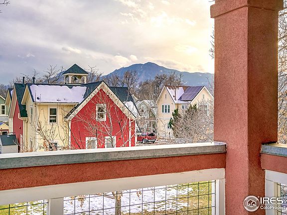 Delight in the sunlit splendor of this inviting Iris Hollow residence. Perfectly situated on the upper level, this end-unit escape is reminiscent of a penthouse. An open-concept layout flows w/ expansive windows showcasing picturesque views throughout. Stainless steel appliances are highlighted in a stylish kitchen complete w/ stone countertops. Wrapped in plush carpeting, a luminous living and dining area offers ample space for entertaining. Retreat to a sizable primary bedroom featuring sliding glass doors opening to an expansive private rooftop patio. Imagine warm evenings spent dining al fresco as views of the foothills unfold in the distance. Two additional bedrooms - one w/ a Murphy bed and one w/ patio access - present flexible living space. A laundry area is an added amenity while a one-car detached garage offers plentiful storage. Situated in an ideal Boulder location, residents of this pet-friendly community enjoy close proximity to shopping and downtown Boulder.