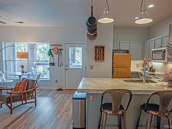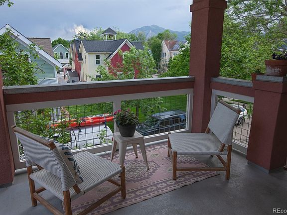 This Stylish Iris Hollow condo has tranquility and Flatirons views, yet it has easy access to everything! Renovated kitchen is a baker's dream w/ thick slab marble counters & convection oven, new appliances & hardwood cabinets. Brand new flooring throughout. Updated bath has tidy white hex tiles, solid dark wood vanity & brushed nickel fixtures. Sit on the front porch and watch the Flatirons or relax on the private patio off the master. Detached garage with workbench for projects and loft for extra storage. Located next to Elmer's Two Mile Park walking trails, this location makes getting everywhere easy: Walk to grocery & liquor stores. You are 100 paces to Red Rocks Coffee. Bike to Pearl St., Whole Foods & 29th St. Mall + just 10 blocks to Foothills Hwy. Common neighborhood grassy areas and the cutest little neighborhood red preschool house!