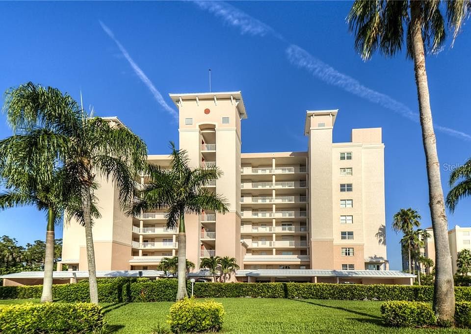 Lovely Condo located in the Pet-Friendly resort style community of The Estuaries II....a waterfront golfing community overlooking Terra Ceia Bay. A former builders model, this first floor charmer offers a unique spacious floor plan and many additional amenities. Two Bedrooms, Two Baths, an additional Den/Office, and a enclosed lanai just off the enormous living room and dining room area. The generously sized Den/Office displays Custom Oak Built-In Bookshelves, Plantation Shutters, and space saving Pocket Doors. Stainless appliances, tons of counter top space, and a bounty of cabinet storage will satisfy even the fussiest chef. The Master Bedroom offers a large walk-in closet, an enormous Master Bathroom Suite, Plantation Shutters, and sliding doors that open to the enclosed Lanai...a perfect setting to sip your morning coffee. The interior laundry room offers a full size washer and dryer and additional storage space. Hurricane Shutters, assigned under building parking, a personal storage unit, and a building elevator add to the list of extras! This beautifully maintained active gated community offers spectacular views of Terra Ceia Bay, a Heated Community Pool, a Boardwalk, Fishing Pier, Nature Trails, and an outdoor grilling area. The Terra Ceia Bay Golf & Country Club is an 18-hole executive golf course on site with No Mandatory Membership Requirement offering a Pro Shop, Tennis Courts, Restaurant, Fitness Center and a Large Pool. Easy access to I-75 and local airports, this beauty will not last long!