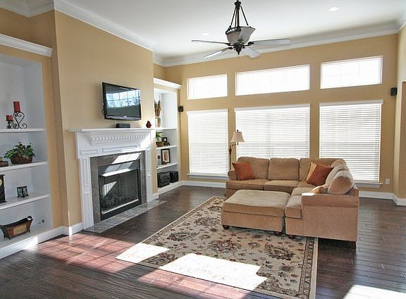 Outstanding custom home built by one of the areas well know custom builders. Many upgrades and features including open floor plan ranch, hand scraped hardwood flooring,custom woodwork,oil-rubbed bronze fixtures,and so much more. The spacious great rm is highlighted by a cozy gas fireplace flanked by custom built-in bookcases. Preparing meals is a pleasure in the gourmet kitchen w/ granite counter tops,42 staggered cabinets w/glass feature cabinets & 5 burner cooktop. Entertain in the elegant dining rm with lighted crown molding. Working from home will be a pleasure in the den. In the master BR suite you will find a large walk-in closet & luxury master bath w/ granite counters,a walk-in shower and soaking tub. An iron-spindled staircase leads to the finished lower level where you will find a media rm,bar area,a bedroom & full bath. Outside is a gorgeous brick & stone front exterior,a 3 car garage, beautiful landscaping service by a lawn irrigation system, and a great fenced back yard.