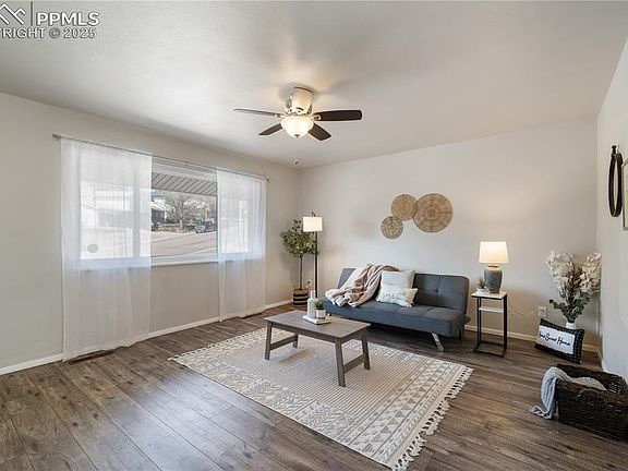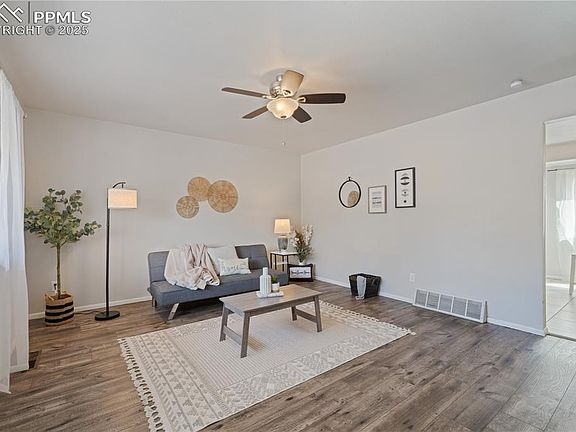 Charming, Updated Home with Expansive Outdoor Living & PAID-OFF SOLAR! Nestled on a spacious quarter-acre lot, this beautifully updated home is ready for you to move in and enjoy! The backyard is an entertainer’s dream, offering three gathering areas including a covered patio, and a separate patio area with a fire pit. With multiple garden beds, fruit trees (Apples and Pear), an almond tree and don't forget about the berries in the back, you'll have harvests in no time. Not one but TWO GAS LINES, one for your BBQ pit, and another for the cozy fire pit, you’ll love hosting year-round. Added electrical outlets near gas line to start envisioning your new backyard oasis. Inside, you’ll find two inviting living areas, one featuring a wood-burning fireplace for those chilly Colorado nights. An additional nook offers the perfect space for a home office or reading room complete with built in bookshelves and a closet if you so wish for an additional bedroom. Additional updates include a NEW FURNACE (2024), AC (2023), DISHWASHER (2023), updated bathrooms, kitchen, and a radon mitigation system for peace of mind. Location, Location, Location! Prime location near Pererson and Schriever Air Force Bases, with easy access to shopping, dining, and everyday conveniences with First and Main just down the road. Just minutes from the expansive Palmer Park, offering endless trails, an off-leash dog area, and stunning Pikes Peak views. Villa Loma Park is just down the street, connecting to the popular Homestead Trail--a go-to spot for cyclists, runners and walkers alike. Enjoy mountain views from the main bedroom and front living area, with seasonal views of Pikes Peak. With fully paid-off solar panels, energy efficiency is built right in! Don’t miss your chance to call this stunning property home—schedule your showing today!