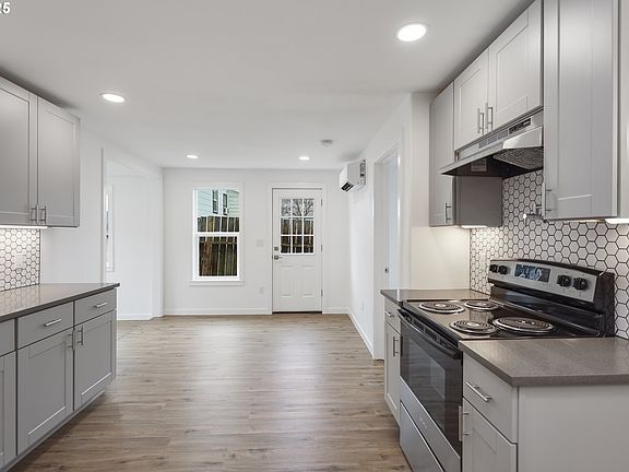 This beautifully renovated 2-bedroom, 1-bathroom home offers 1,085 SQFT of modern comfort. Every detail has been updated, including new plumbing, electrical, insulation, ductless heat pumps, sheetrock, paint, and flooring. The stylish kitchen features quartz countertops, a tile backsplash, and brand-new cabinetry. Enjoy durable LVP flooring with cozy carpet in the bedrooms. Exterior upgrades include a new roof, siding, windows, doors, sewer line, and water line. With plenty of parking, space for an RV, and a detached garage/shop, this home is move-in ready!