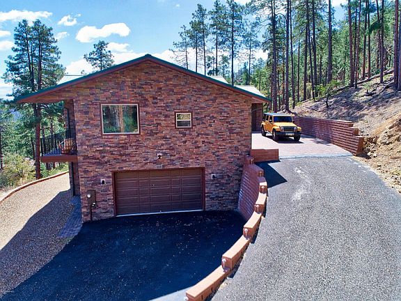 If you desire maximum privacy, the feel of living in the wild with excellent views, paved road, within 5 minutes of shopping, call today! Unique backyard is adjacent to Wolverton Mountain, with 1000's of acres of Prescott National Forest. The Lower level offers an additional 2181 sq.ft. easily converted into extra living space, bedrooms or leave as current 8 car garage w/ huge shop. The 2690 square ft. main living area offers unobstructed views of Prescott, Thumb Butte & Granite Mountain from huge picture windows. Enjoy sunrises, sunsets, beautiful cloud formations and wildlife from a ready to move-into beautifully designed home. Special features include; custom cabinets, granite counter tops, see-through Rock Fireplace, gourmet kitchen, wood & tile floors (no carpet), luxury master bath,