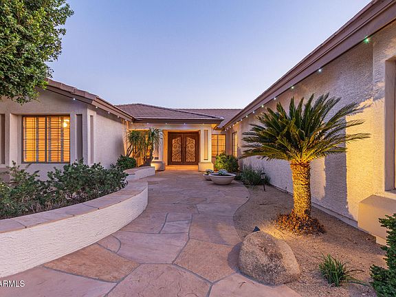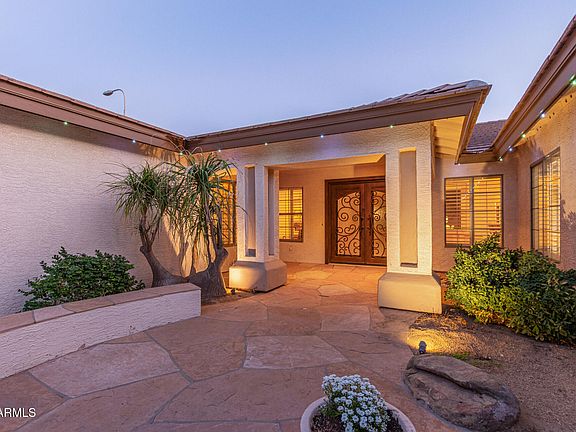Welcome to this stunning corner lot home in one of Chandler's most highly sought-after gated communities, the Grand Reserve. With a prime location near top-rated schools, shopping, dining, and easy freeway access, this home offers both convenience and luxury. From the moment you arrive, the beautiful curb appeal, manicured lawn, and grand walkway set the tone for what's inside. Step through the front door and be greeted by a bright, open interior with vaulted ceilings and a seamless flow. The spacious living room is perfect for unwinding, and with double French doors that open to the backyard, it creates the perfect indoor-outdoor lifestyle. The great room is bathed in natural light, while classic plantation shutters and a cozy fireplace make it feel like home. The chef's kitchen is a showstopper, boasting granite countertops, custom wood cabinetry with crown molding, a stylish tile backsplash, stainless steel induction cook top and Thermador appliances, a walk-in pantry, and a peninsula with a breakfast barideal for casual dining or entertaining guests.