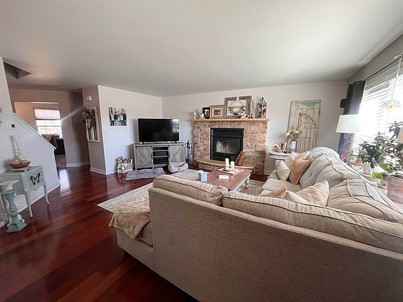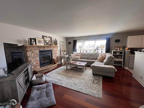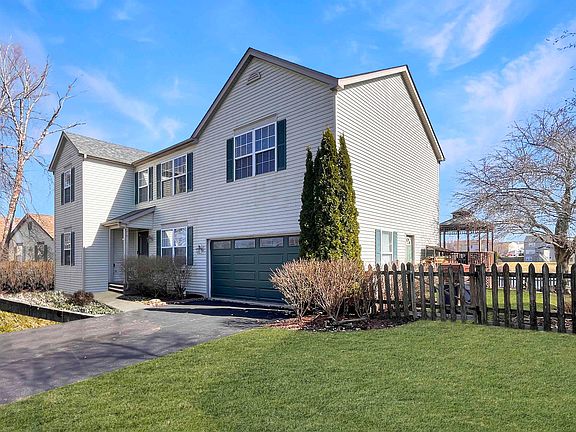 Charming home located on Farmington Pond in prime location just minutes from I-90, convenient for commuters, shopping and schools. An open staircase greets you into this perfectly decorated home with a formal dining room to the right and den on the left, perfect for a home office, a game or hobby room. Hand-laid Brazilian Cherry hardwood flooring in dining and living room and tile in the kitchen creates a comfortable and warm space. Living room and kitchen open up with a half wall between and large sunny breakfast area with sliding doors open up to a huge deck with gazebo and raised jacuzzi area overlooking the water. Laundry room is adorned with custom wood shelving and storage off of the garage. 3300 sq feet of finished area in this home that has five bedrooms upstairs with walk-in closets in most rooms. New plush carpeting throughout second level and first floor office and updated bathrooms. Finished basement with den/work out room and large rec. room with egress window. Roof, furnace and central air all new in 2022.