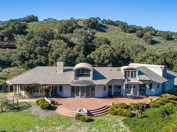 Stunning 3 bed, 3 bath, 2,600 sf estate on 8.3 acres designed by a famous local architect as his private residence. The home was built to take advantage of the expansive views of unobstructed vistas of surrounding mountains while using the latest green technology to conserve energy via a steel grid and rigid foam system for constructing the walls. **Spacious light & bright great room offers an open floor plan w/ soaring ceilings, fireplace, granite water wall fountain and French doors to large outdoor patio**Gourmet kitchen features granite counter tops, ample custom cabinetry, Stainless Steel appliances, large center island w/gas stove, breakfast bar, and breakfast nook. Beautiful master suite has a fireplace and French doors leading to the outdoor patio.**Master bath features a tiled floor, dual sink vanity, oversized tub & shower**Other amenities include concrete radiant heat floors, hardwood flooring, skylights, and outdoor spa. An added bonus is the delightful climate!