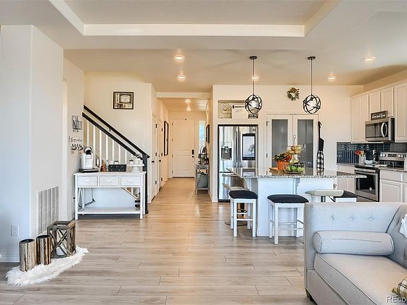 HUGE potential with this home! Built in 2019 with lots of upgrades. This open floor plan is bright and welcoming. The home chef will love this kitchen with a large island and the family room comes with mounted TV. Two Bedrooms are on the main floor. Back yard has a stamped concrete patio that is perfect for entertaining! The spacious loft is an awesome for a TV room, play room or an office. This Bonus space will not disappoint! Basement rough-in ready for finish-out, drywall shown in pictures is included. This south facing home is situated in a newer neighborhood. Easy access to DIA and I-70.