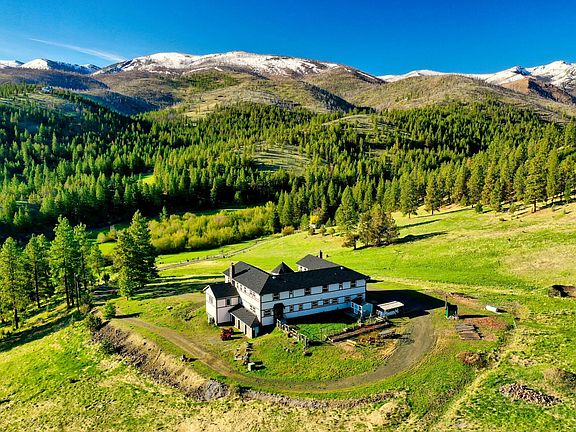 #250 A rare opportunity to own a property of this caliber- don't miss your chance to own this 7,164 sq ft home on 161.97+/- acres. The home features a spacious floor plan with upgrades throughout. 6 bedrooms, 4 ½ bathrooms with two of them being primary suites. The great room is inviting with high ceilings, fireplace and large windows allow natural light to flood the space. 990 sq ft garage with 3 electric garage doors and additional storage. It includes a sprinkler system, intercom system, and alarm system in the inner workings of this home. Hydronic wood furnace radiant floor heat.Approximately 15.78 acres of irrigation rights, pond, Pine Creek runs through lower portion, multiple fruit trees, pine and fir trees. Home is Spring fed with a 1,000-gallon cistern. Barn w/stalls, storage, lots of undercover storage for all your toys. This property is a must see to get the full experience of all it has to offer.For the investors this could make a great bed & breakfast, Air BnB or retreat.