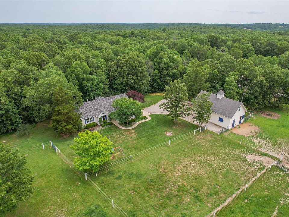 BRING THE HORSES! 7 acre lot has the perfect amount of pasture fenced for horses with woods for hunting or just enjoying wildlife. Including two big stalls & huge loft, the 24x40 barn is large enough for all your needs! Property features adorable chicken coop, matching the house & barn. Let's get to the best part, step into this gorgeous home with cathedral ceilings and over 3,000sqft of space. You'll immediately notice beautiful hardwood floors & loads of natural light. The unique kitchen includes quartz countertops, farmhouse sink, stainless steel appliances, coffee bar & custom cabinetry with plenty of storage space. With 5 bedrooms & 3 bathrooms, there's room for everyone! Full walkout basement with wood stove is perfect for entertaining. Back deck for summer BBQ overlooks koi fish pond & beautiful plants/flowers. New roof Architectural shingles put on 2022 along with new TRANE HVAC heat pump & thermostat. Leaf filter on gutters! Short drive to Fort Leonard Wood. Video available!