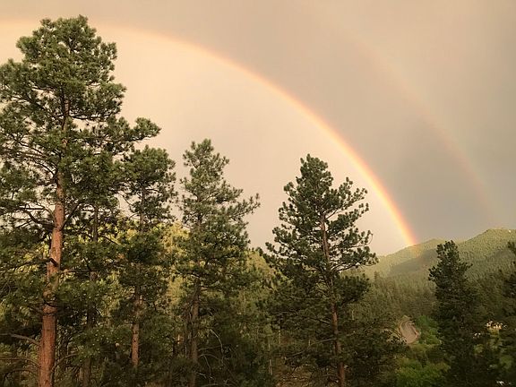 Mountain Lovers Paradise!! Beautiful 360 Mountain View's! Freshly painted and updated 2Bedroom/1 Bathroom loft with balcony and a large fenced in yard, private deck and covered patio, small hiking trail (great for dogs!) and a treehouse platform for hanging in the trees! Amazing views, beautiful sunrises from your bedroom and sunsets over the mountains from your living room. Enjoy looking at the clouds and moon through your skylight! Lofted ceilings! Tons of natural light!! Very warm and cozy in the winter with baseboard heaters and big fireplace. Private entrance with covered porch and wrap around back patio, small outside storage/shed and shared yard/driveway with 2 personal parking spots. Great big fenced in backyard for dogs! New dishwasher, oven/stove and refrigerator! Brand new custom bathroom with double rain flow shower heads from the ceiling! Brand new kitchen with butcher block counter tops and open shelving. This is a freestanding home with a top and bottom unit so there is only one other rental downstairs. Great location for hiking and playing outdoors, concerts at Red Rocks (8 miles down the hill), 7 minutes to the heart of Evergeen, 35 minute drive to Denver, 20 minutes to Golden, 25 minutes to Idaho Springs, 1 hour to Boulder. Appliances Included: Dishwasher, Disposal, Oven, Refridgerator, Microwave. Laundromat is 7 minutes up the road and affordable. 1 year lease Tenant pays all utilities Pets Ok with $250 deposit per pet