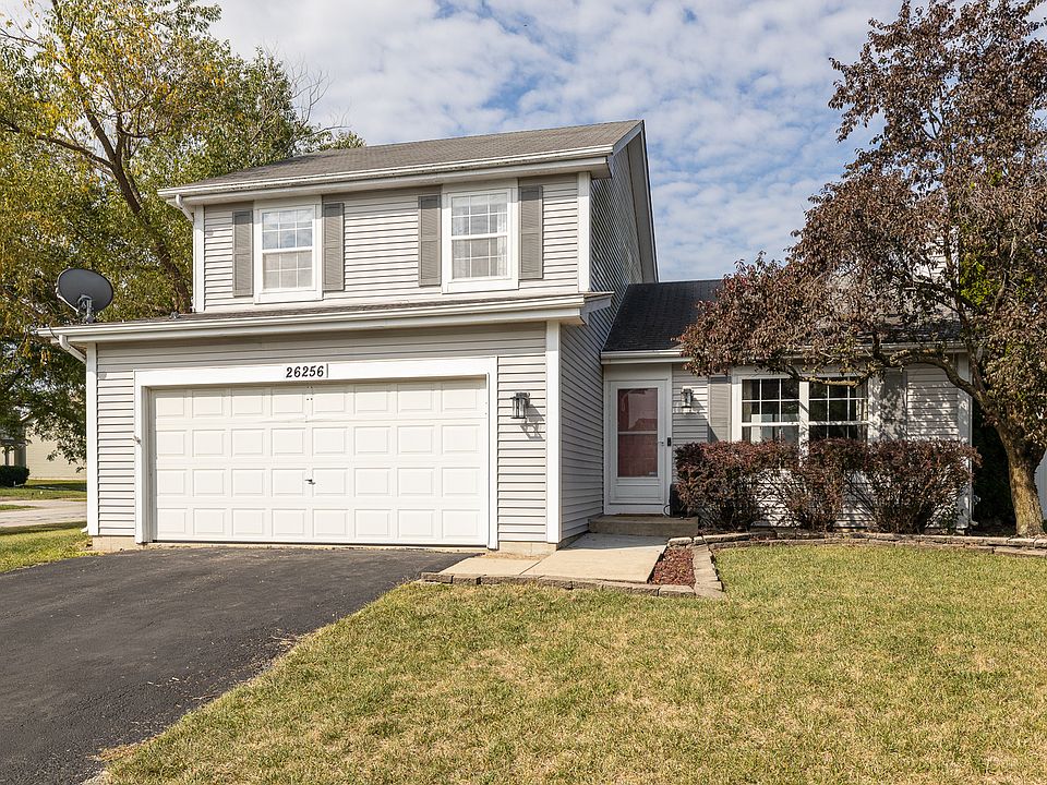 Welcome to this beautiful 3-bedroom, 1.5-bath home perfectly situated on a desirable corner lot in the heart of Monee. From the moment you step inside, you'll be impressed by the Acacia hand-scraped hardwood floors throughout the main level and the large vaulted family room featuring a cozy wood-burning, gas-start fireplace, the perfect place to gather. The kitchen is both stylish and functional, offering stainless steel appliances, abundant cabinetry, pantry, seated island, and a sunlit dining area with sliding doors leading to the backyard patio. A convenient powder room completes the main floor. Upstairs, you'll find three spacious bedrooms, with luxury vinyl plank flooring, including a primary suite with a walk-in closet. The full bath is also located on the second floor for easy access. The full basement provides endless potential for finishing including a roughed-in bathroom. Enjoy outdoor living with a large backyard and newer privacy fence, plus the convenience of a two-car attached garage that includes a year old freezer. Home also includes whole house water filtration system. Located in a growing community, this home is close to everything Monee has to offer. Monee Reservoir is close for fishing and kayaking, and enjoy new local developments including a larger near by park and Starbucks! Convenient access to the expressway and Metra makes commuting a breeze. While there are some convenience shops and restaurants very close by, there are larger shopping areas just a short drive away. Don't miss the opportunity to call this well-kept home yours! Seller offering HWA home warranty diamond level for buyers piece of mind and $5,000 closing credit for interior painting!!