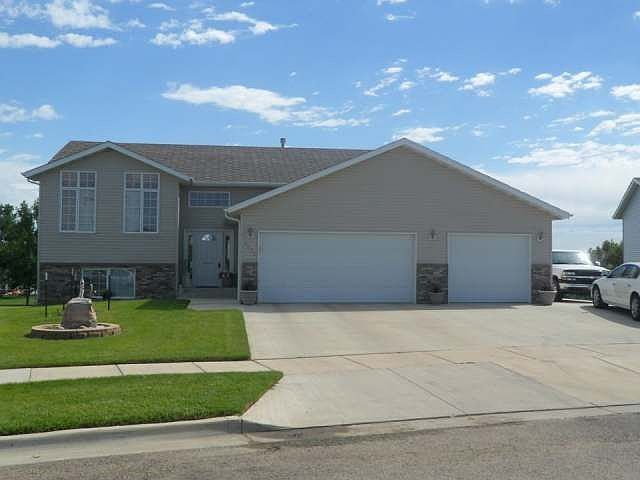 This MAGNIFICENT house situated in the heart of the Plainview Heights Development, with VIEWS of both Bismarck and Mandan has many features to offer. This split level home offers an open floor plan both upstairs and down, with it's SPACIOUS kitchen with VAULTED ceilings throughout. Maple cabinets and a CUSTOM RAILING in the entryway to its large master bedroom with a nice master bath and walk-in closet. The upstairs offers a second bedroom and sitting room along with a spacious dining room and living room as well. The downstairs is spaciously designed with a large family room with many details and custom BAR area, along with another bedroom and bathroom. It also has a nice size OFFICE/BEDROOM with French entry doors and a Walk-Out Basement. Garage has hot/cold water, floor drain and insulated with HEATER. Call to view today!
