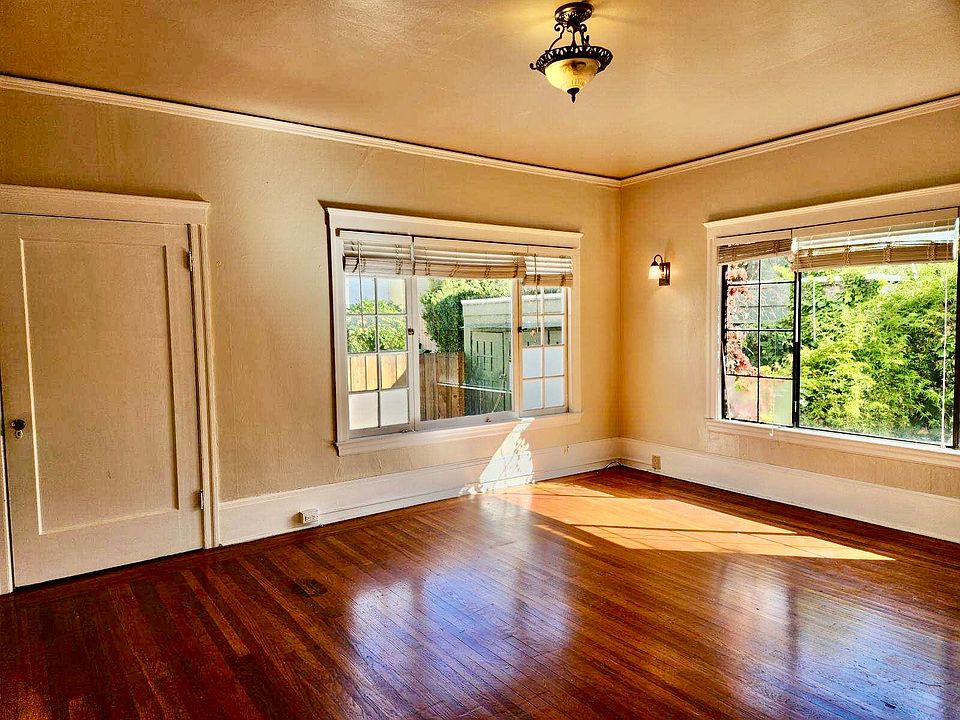 A beautiful, large apartment in a well situated 12 unit building. Hardwood floors throughout with large walk-in closets and a separate dining room with built-in hutches. Water, garbage and gas (including heat) included in rent. Bike parking and laundry facility in the building. The Elmwood district is an older neighborhood in Berkeley with great shopping, restaurants, coffee houses, a movie theater and library, all within easy walking distance. 1/2 block from College Ave. and near public transportation. Owner pays water, garbage and gas/heat.