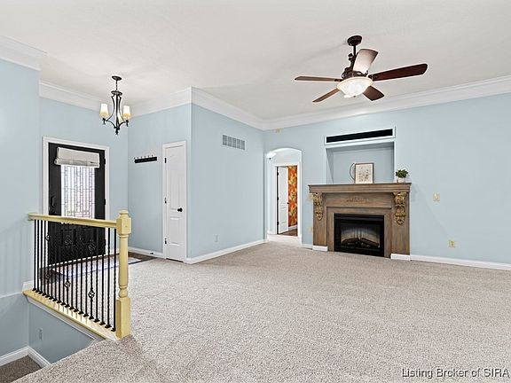 Here's the one you've been waiting for in TANNER ESTATES! This 4-bedroom, 3-bath ranch with a finished walkout basement offers space, function, and convenience in one of the area’s most desirable neighborhoods. Step inside to an open-concept layout featuring 10' ceilings, abundant natural light, and a fireplace with a gorgeous custom mantle in the living room. The spacious eat-in kitchen has real hardwood floors, a large walk-in pantry, and sliding doors to the deck! A laundry/mudroom is conveniently located around the corner near the 2-car garage. The large primary bedroom has vaulted ceilings an ensuite bath, and an oversized walk-in closet! 2 additional bedrooms with double closets and a full bath completes the main level. The walkout basement expands your living space with a large family room, bar area, 4th bedroom, full bath, and a flex room—perfect for a home office or gym. There’s also ample storage, including a finished utility room with backyard access for tools or lawn equipment. Step outside to your private retreat: a fully fenced 0.25-acre lot with Trex deck, firepit area, and a hot tub with a mounted outdoor TV—ideal for relaxing or entertaining year-round. Easy access to I-65, I-265, and Silver Creek Schools. BRAND NEW CARPET THROUGHOUT ENTIRE HOME INSTALLED 8/14/2025! This one even has a 2-year-old roof! Don’t miss your chance to own in Tanner Estates—schedule your showing today!
