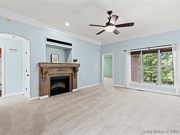 - Description: Electric fireplace w/ stunning wood mantle,Flooring: Carpet