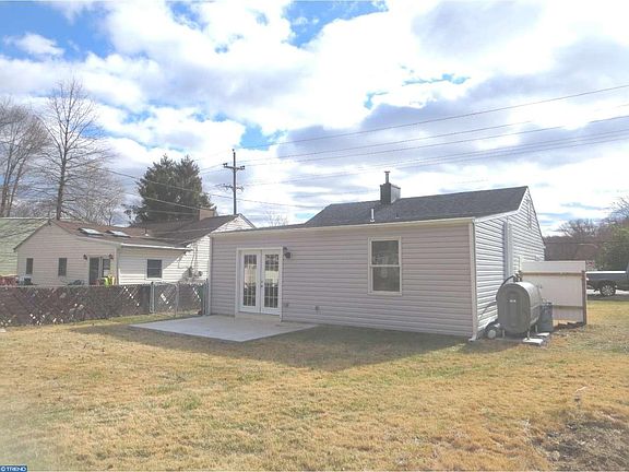 A Dream expanded easy living one floor rancher in desirable Bucks County that has been completely remodeled inside and out that is priced to sell. Enter into the home and you will immediately be impressed with the quality workmanship. Kitchen features lots of cherry cabinets, granite counter top with over sized drop in stainless sink with pull out faucet, subway tile back splash with ceramic rope tile inlay and ceramic tile floor, appliance with refrigerator, range, built in microwave , dishwasher and garbage disposal, recessed lighting and pass thru to dining room with granite counter top, great for entertaining. Dining area with atrium door leading to rear cement patio, crown molding and parquet wood floor. Living room featuring new wall to wall carpeting, ceiling fan and planked wood ceiling. Front bedroom with w/w carpeting and ceiling fan, rear bedroom with w/w carpeting, ceiling fan and entrance to bathroom. Enlarged full bath features corner whirlpool tub w/ ceramic tile, adjacent corner shower stall, ceramic floor, new vanity, toilet and tri-mirrored medicine cabinet. Laundry room closet off of hallway with ceramic tile and cherry cabinets for storage. Exterior features new maintenance free dutch lap vinyl siding and 3 dimensional roof, replaced windows, two car macadam driveway, fenced-in rear yard (except for left front) and large newly sided 16' x 12' shed on cement slab. Extras include central air, new above ground oil tank on side of home, 50 gal GE domestic hot water heater, pull down attic stairs to floored attic with electric, great for storage. Ceiling of attic has recently been re-insulated with silver foil. Freshly painted interior with colonial trim and 6 panel doors. This home is FHA/VA qualified making low down payment. Taxes of only $3271 makes monthly payment affordable. Close to major roads, public transportation and shopping. Just bring the moving truck!