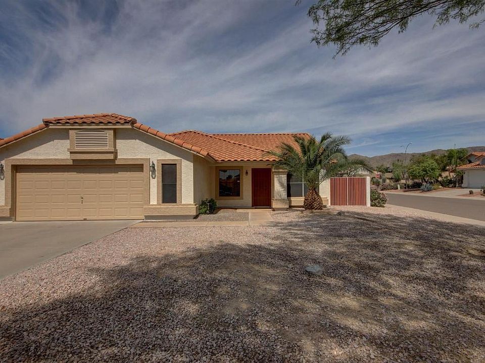 Absolutely stunning turnkey single level home in Awatukee! Warm wall tones and soaring ceilings throughout! Great room has cozy fireplace! Eat in kitchen has center island with breakfast bar, plenty of cabinet space and stainless steel appliances. Large master suite has a bay window with a view, huge closet and newly remodeled bathroom with double sink vanity and walk-in shower. New plush carpet throughout, new door hardware and fresh paint inside and out. Resort like backyard has covered patio with sparkling pool and lots of lush green grass! RV gate and plenty of room for boat stowage. The 2.5 car garage has tons storage, 220 and work area that feels like a man cave. Close to schools, freeways and all that Mountain Park Ranch has to offer. Come see this home today!