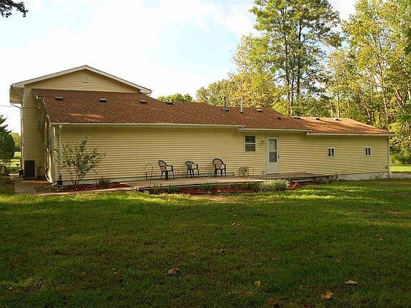 2-3 BR home located south on 1.68 acres. Well-kept home with large living room with French doors leading outside. Home features 3 patios and a deck plus an attached garage. Eat-in kitchen has plenty of cabinets & counter space. Large dining room with gas log fireplace. Master bedroom suite features a 22 x 15 bedroom, private bath with jet tub and 4 x 8 walk-in closet. Beautifully kept and manicured lawn. The 2 downstairs bedrooms and the dining room were built in 1969 the rest of the home was added on in 2003. Avg Electric $215-$235