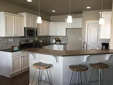 Available Now. Stylish and comfortable 3bd/2ba home with 2 car extra-long garage and yard with concrete patio. South facing driveway for those snowy days and a fireplace to keep you cozy. REFRIGERATOR, WASHER & DRYER are INCLUDED although not pictured. Lawncare included. Lots of cabinets and quartz counters in this well-appointed kitchen; including microwave, dishwasher and pantry. Lounge in a grand master suite with walk-in closet and double sinks. Enjoy a quaint and quiet east Eagle neighborhood that is so convenient to Hwy 55 and Boise, yet just off of Hill for easy access to downtown Eagle.