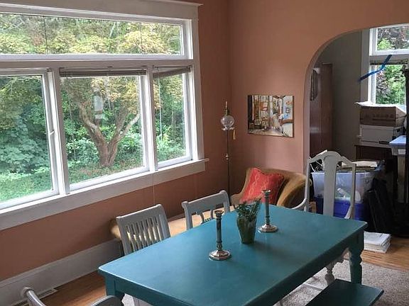 Dedicated office space for work-at-home needs. Upstairs has a few peekaboo views of the river. 5 minute walk by tree-lined path to CMH hospital, the co-op, the river, or nearby hiking trails; convenient walkable access to restaurants and grocery stores. Available late December, 2025.